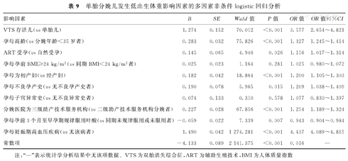单胎分娩儿发生低出生体重影响因素的多因素非条件logistic回归分析