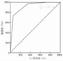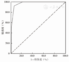 对轻症组及重症组患儿绘制PEWS预测流感患儿发生重症的ROC曲线(图3),其ROC-AUC为0.916±0.041,最佳临界值为PEWS 2.50分;对重症组及危重症组患儿绘制PEWS预测重症流感患儿发生危重症的ROC曲线,其ROC-AUC为0.959±0.017,最佳临界值为PEWS 5.21分。PEWS预测流感重症患儿发生危重症的ROC曲线,见图4。
