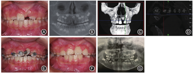 畸形,发病率约为0.2% ~ 1%[1],常引起牙齿排列不齐、邻牙倾斜移位、咬合关系紊乱等并发症。由于其阻生形式复杂、常伴有牙根弯曲及牙根短小,以往治疗常以拔除为主,严重影响了患者面部美观及口腔功能。近年来,随着口腔正畸学及口腔影像学技术的发展,以及早期矫治理念的推广深入,越来越多的上颌埋伏倒置中切牙得以保留。目前,对于上颌埋伏倒置中切牙的矫治适应证及矫治时机尚有不同观点。本研究回顾性分析南方医科大学深圳妇幼保健院2017—2019年收治的3例上颌埋伏倒置中切牙病例,并进行文献复习,旨在为正畸临床工作提供参考。