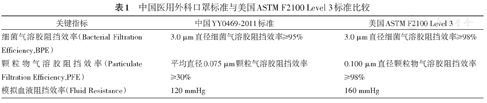 中国医用外科口罩标准与美国ASTM F2100 Level 3标准比较