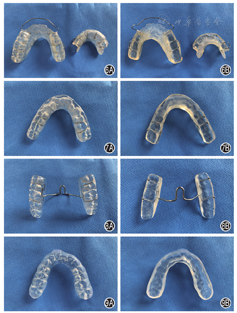 垫,后牙区垫高3 mm。功能斜面保持70°。夜间佩戴,佩戴时间为10 ~ 12 h/d,连续佩戴3个月,治疗期间,每周复诊1次,进行咬合调整。