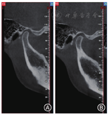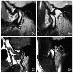干扰,在此基础上下颌前移,使髁突前移来适应前移位的关节盘,以使髁突和前移位的关节盘达到良好的"盘髁"关系,关节盘的位置基本恢复正常,同时下颌运动异常、关节区疼痛、弹响与杂音等关节症状也有所缓解。本科室保守治疗的治愈率约为85%,治疗效果较好(图10,图11)。笔者团队多次对临床上TMD患者治疗情况进行评估与分析:(1)2015年6月至2016年6月,于广州医科大学附属口腔医院颞下颌关节病科就诊的颞下颌关节弹响患者60例,其中20例采用关节腔注射联合咬合板治疗的总有效率为95%,治疗前后,弹响的症状消失或有明显改善;另外20例单纯采用单纯关节咬合板治疗的总有效率为85%,治疗前后弹响的症状得到改善;其余20例采用单纯关节腔注射的总有效率为65%,治疗前后弹响症状得到改善[2]。(2)2016年1—12月,于广州医科大学附属口腔医院颞下颌关节病科就诊的急性颞下颌关节不可复性前移位患者50例,采用保守序列治疗(关节腔注射联合咬合板及手法复位等理疗)后,患者VAS评分均明显下降,张口度和疼痛症状均得到明显改善[4]。