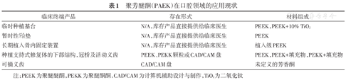 注:PEEK为聚醚醚酮,PEKK为聚醚酮酮,CAD/CAM为计算机辅助设计与制作,TiO2为二氧化钛