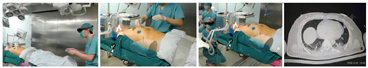 选取解放军总医院第一医学中心胸外科的肺部小结节患者1例,术前检查完善,无绝对手术禁忌,拟行胸腔镜肺楔形切除术。术前利用患者平卧位胸部CT对患者体表及靶病变进行三维重建,拟定辅助线,使用hookwire定位针对靶病变进行穿刺定位,利用术中CT进一步验证定位的准确性,进而对病变进行楔形切除。