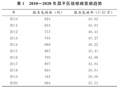 北京市昌平区结核病发病数据来源于"结核病信息管理系统"中传染病报告卡的个案信息。按照发病日期在2010年1月至2020年12月、现住址为北京市昌平区进行筛选、统计,获得结核病发病数据。研究所涉及的2010—2020年北京市昌平区常住人口数据来源于《中国疾病预防控制信息系统》的《基本信息系统》。通过结核病报告发病数据和常住人口数计算当年的结核病报告发病率。本研究向北京市昌平区结核防治所伦理委员会申请免除知情同意并获批通过。