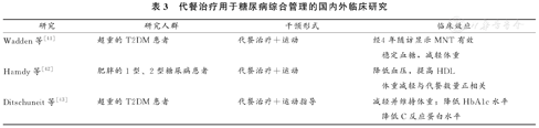 2016年WHO《全球糖尿病报告》[52]明确提出,可通过减重和限制能量摄入实现缓解T2DM。超重和肥胖成人T2DM患者的管理目标为减轻体重的5%~10%。超重和肥胖成人T2DM患者的体重管理方式包括生活方式干预、药物、手术等综合手段。肥胖的成人T2DM患者尽量通过生活方式及药物治疗,血糖仍然控制不佳者建议采用代谢手术治疗[52]。