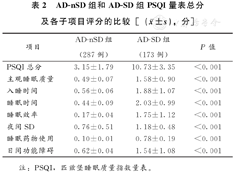 AD-nSD组和AD-SD组PSQI量表总分及各子项目评分的比较[(