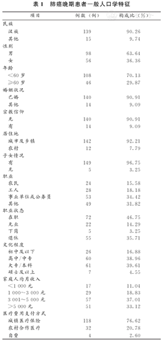 肺癌晚期患者一般人口学特征