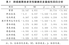 肺癌晚期患者灵性健康的多重线性回归分析