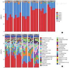 Illumina PE250测序得到的PE reads首先根据重叠(overlap)关系进行拼接,同时对序列质量进行质控和过滤,对所有样本的有效数据以97%的一致性进行操作分类单元(Operational Taxonomic Units,OTU)聚类分析和物种注释(数据库Silval32)。基于OTU聚类分析结果,可以对OTU进行多种多样性指数分析,以及检测测序深度;基于分类学信息,可以在各个分类水平上进行群落结构的统计分析。在上述分析的基础上,可以进行一系列群落结构和系统发育等深入的统计学和可视化分析。