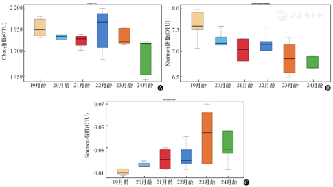 自然衰老大鼠随着月龄增加肠道菌群的丰度和多样性也随之发生演变,为老年大鼠及人群的肠道菌群及疾病研究提供了数据参考。