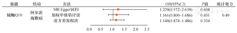 | 辅酶Q10 | 阿尔茨海默病 | -0.003 | 0.016 | 0.841 | 13.756 | 0.731 |