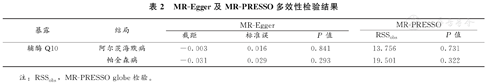 MR-Egger及MR-PRESSO多效性检验结果