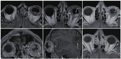 脉络膜转移瘤以肺癌最多见,常伴全身其他多部位转移,单眼受累常见,病灶多位于眼球后极,MRI具有一定的典型特征。结合临床病史有利于提高临床医师对疾病的早期识别与诊断能力。