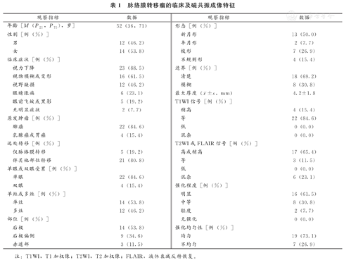 脉络膜转移瘤的临床及磁共振成像特征