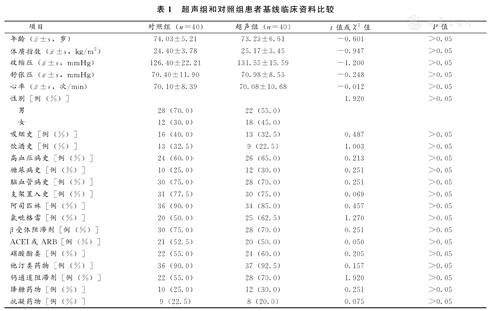 超声组和对照组患者基线临床资料比较