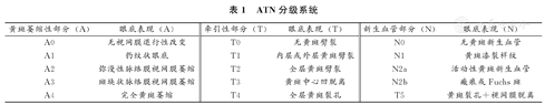 | A0 | 无视网膜退行性改变 | T0 | 无黄斑劈裂 | N0 | 无黄斑新生血管 |