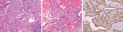 女性,51岁。因"咳嗽、咳痰"1周,于2015年11月28日收入广东医科大学附属深圳南山医院呼吸科。患者咳嗽以刺激性干咳为主,少量黏白痰。无咳血,无发热、盗汗,无体重减轻。门诊治疗无好转,行胸部X线片提示右肺门区占位性病变,遂行胸部CT平扫及增强表现:右肺中叶、下叶支气管间可见一类圆形肿块,直径约4.2 cm,密度较均匀,CT值约为36 Hu,动脉期CT值约80 Hu,实质期约90 Hu,考虑偏良性病变(硬化性血管瘤、孤立性纤维瘤),不完全排除类癌(图1)。既往有子宫肌瘤和胆囊结石病史。体格检查:神清,无贫血貌,全身皮肤、巩膜无黄染,浅表淋巴结未触及肿大,口唇无发绀,颈软,胸廓无畸形,双肺语颤增强及减弱,双肺叩诊清音,双肺呼吸音清,未闻及干湿性啰音。心前区无隆起,无震颤,心界无扩大,心率93次/min,律齐,未闻及杂音。腹平软,全腹无压痛,无反跳痛,肝脾肋下未触及,莫菲氏征阴性,肝肾区叩痛阴性。双下肢无水肿。入院后积极完善各项检查:血、尿、粪常规正常。红细胞沉降率为56 mm/h,C反应蛋白(C reactive protein,CRP)12.7 mg/L,糖类抗原CA153为41.76 IU/ml ,痰找抗酸杆菌、结核感染T细胞、γ-干扰素(interferon-γ,IFN-γ)三项检测均阴性。支气管镜检查提示右中叶、右下叶基底段外压性狭窄。考虑位于肺门,位置深,穿刺活检困难,遂经本科会诊后转入手术治疗,12月3日全麻双腔气管插管胸腔镜下行右肺门肿物切除,术中见水平裂与斜裂交界处约5 cm×4 cm大小圆形肿块,予以吸引器、超声刀钝锐性分离,肿瘤内侧与肺动、静脉关系密切,血供丰富,有滋养血管,紧贴右中、下叶支气管分叉处完整切除,术中冰冻病理考虑良性肿瘤,未做纵隔淋巴结清扫,术后常规病理见肿瘤为实性、乳头状、硬化性和出血性组织结构混合,增生的Ⅱ型肺泡细胞被覆在乳头状结构表面,并可见慢性炎症和泡沫细胞等变化(图2)。免疫组织化学检查明确为硬化性血管瘤(图3),术后恢复顺利,第8天痊愈出院。随访11个月,患者无不适,复查胸部CT未见异常。