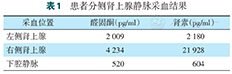 患者分侧肾上腺静脉采血结果
