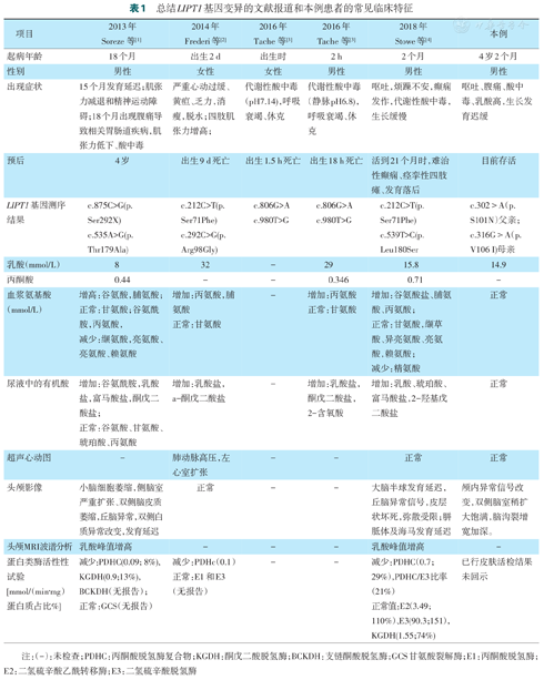 总结LIPT1基因变异的文献报道和本例患者的常见临床特征