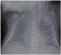 患儿于PICC置管后3 d突然出现严重心动过缓及低血氧饱和度,听诊心音遥远,常规气管插管、心脏按压等抢救措施无效,行心脏超声提示:大量心包积液,胸部X线片提示PICC管端移位右心内,管端卷曲。行心包穿刺术抽出8 ml乳白色液体,积液化验提示为乳糜性质,故心包积液、心脏填塞诊断明确,考虑为PICC相关性。