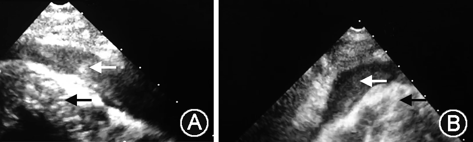 另外本患病初为中量心包积液,此后复查心脏超声积液逐渐减少,而左室射血分数却逐渐恢复,结合本院床旁心脏超声可见心包腔内随心脏收缩舒张飘动的条索样中低回声占位,考虑为心包内血液形成血栓,导致心包腔内液体成分减少,同时血栓在一定程度上可能堵塞了破口,从而减少了主动脉内血液向心包腔内的持续流入,减轻了心包填塞程度,患者的左室射血分数、血压也逐渐恢复。