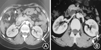 (1)肾细胞癌:部分肾癌可引起血浆肾素水平升高,但升高水平明显低于肾素瘤,主要发生于中老年,无痛性血尿多为首发症状。多为富血供肿瘤,CT增强检查时造影剂“快进快出”,肾素瘤动脉期强化不明显,呈延迟显像。
