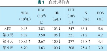 WBC (109/L) | RBC (1012/L) | Hb (g/L) | PLT (109/L) | N (%) | EOS (%) | |