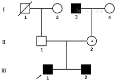 ▇:患病男性;□:正常男性;○:正常女性;⊙:女性携带者;↗:先证者;