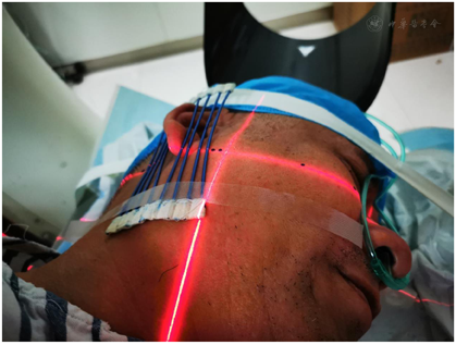 CT引导下经皮穿刺茎乳孔面神经射频消融治疗。