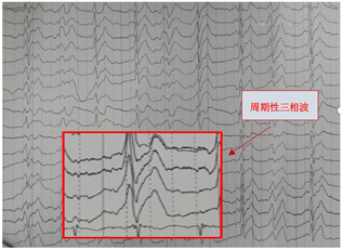 本例患者脑电图呈现有"周期性三相波",脑脊液中14-3-3蛋白阳性,头颅核磁影DWI显示有大脑皮质呈典型"花边征"及结合患者快速进展的临床症状考虑很可能为克雅氏病即Creutzfeldt-Jakob病(CJD)。