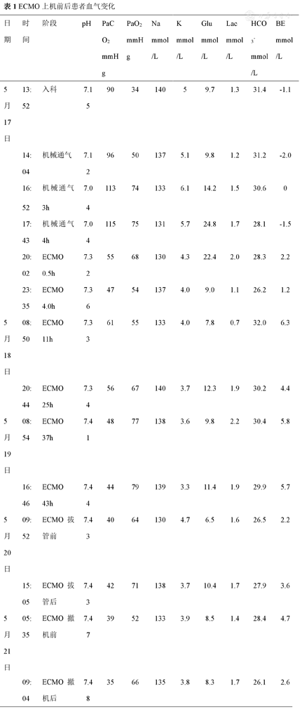 | 15:05 | ECMO拔管后 | 7.43 | 42 | 71 | 138 | 3.7 | 10.4 | 1.7 | 27.9 | 3.6 | |