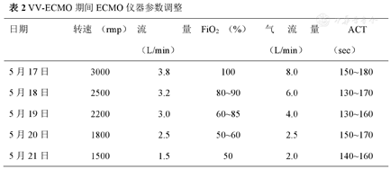 | 5月20日 | 09:52 | ECMO拔管前 | 7.43 | 40 | 64 | 130 | 4.7 | 6.5 | 1.6 | 26.5 | 2.2 |