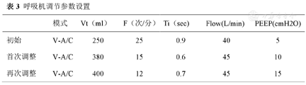 | 模式 | Vt(ml) | F(次/分) | Ti(sec) | Flow(L/min) | PEEP(cmH2O) | |