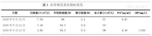 | 日期 | 白细胞(×109/L) | 中性粒细胞(%) | 淋巴细胞(%) | 血小板(×109/L) | PCT(ng/ml) | CRP(mg/L) |