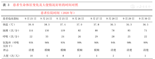 患者生命体征变化及大便情况好转的时间对照