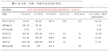 血小板、肝酶、肌酶及炎症指标变化