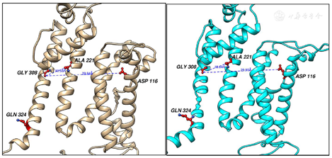 Brugada综合征最常见的基因改变是编码心脏钠通道的SCN5A基因功能缺失突变,但对于其他导致Brugada综合征的离子通道报道较少。KCNH2基因编码心肌细胞膜上快速延迟整流钾电流(Ikr)通道的α亚基,Ikr是心肌复极化的主要外向钾电流,KCNH2是一个包含有819个氨基酸的蛋白,本病例KCNH2蛋白在803位发生了错义突变,氨基酸由甘氨酸变为精氨酸。为探究该错义突变是功能获得性还是功能缺失性突变,应用计算机三维建模,发现本病例KCNH2基因803位置的突变使离子通道跨膜螺旋间的距离稍微变大,会挤压离子通道中心,降低Ikr离子通道的活性,可能导致其功能缺失,延长QT间期。KCNH2是造成Brugada综合征较少见的潜在致病基因,目前国外仅有KCNH2蛋白功能获得突变致Brugada综合征的少数病案报道[7],尚无KCNH2功能缺失致BrS报道。本例患者虽QT间期正常,如果反复发作恶性心律失常和ICD正常放电,在考虑使用奎尼丁常规治疗BrS时,应加强重视QT延长问题,射频消融RVOT外膜可能是应该考虑的治疗方法。