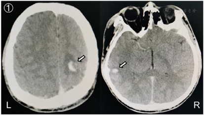 头颅CT:左侧额顶叶及右侧颞叶血肿,头颅MRV:颅内静脉窦血栓形成。