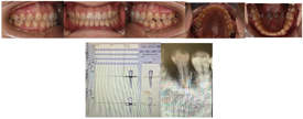 矫治结果及保持:矫治结束后,患者牙齿排列整齐,双侧尖牙磨牙中性关系,前牙覆盖正常,上下牙列中线居中。X线显示,牙根基本正常,无明显吸收(图3,表1)。保持一年后复查,矫治效果稳定,无复发。34牙无松动,根尖片显示,34牙根正常,牙根周围牙周膜间隙正常。牙周科检查:34牙龈色粉红,无探诊出血,无牙周深袋(图4)。