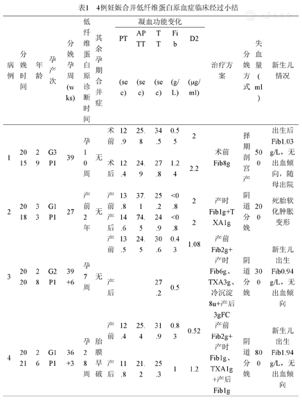 4例妊娠合并低纤维蛋白原血症临床经过小结