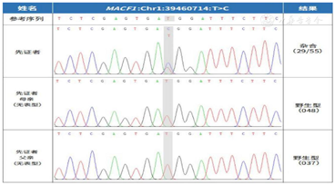 根据患儿临床表现及脑电图高峰失律图形,诊断为West综合征。为进一步明确病因,经福建医科大学附属协和医院医学伦理委员会批准(批准号:2020KY0108),患儿监护人签署知情同意书,采集患儿及其父母外周血行基因全外显子测序(whole exome sequencing,WES),并行Sanger测序进行验证。结果显示(图3)患儿染色体Chr1:39460714位点上MACF1基因存在新发突变(de novo),NM.012090.5:exon 87 c.15266T>C(pMet5089Thr),其父母该位点为野生型,经过Sanger测序验证证实,患儿为上述变异的错义突变,而其父母均未发现变异,符合常染色体显性遗传方式。正常人群数据库中未发现该变异。参照美国医学遗传学与基因组学学会(American College of Medical Genetics and Genomics,ACMG)评级为疑似致病性变异(likely pathogenic, LP)。