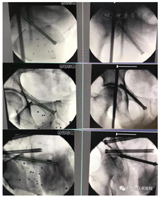 立即行右侧胸腔闭式引流,骨盆固定带有效固定后送入手术室进行抢救,给予输血治疗、补充血容量、氨甲环酸止血、气管插管、呼吸机辅助呼吸等保守治疗。因伤员病情仍不稳定,血红蛋白持续性下降,启动5G紧急医学救援系统+航空转运至四川省人民医院急救中心,增强CT发现肝脏破裂,立即进行骨盆及肝脏DSA及选择性血管栓塞止血治疗,出血得到有效控制后即刻行损伤控制手术,术中证实肝脏破裂,行肝修补术。第2天,经过多学科专家团队评估后,认为伤员不稳定性骨盆骨折,失血量大,宜尽早进行机器人引导的微创骨盆骨折内固定术。