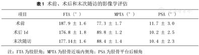 注:FTA为股胫角;MPTA为胫骨近端内侧角;PSA为胫骨平台后倾角