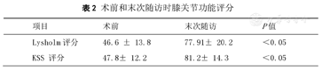 用Lysholm评分和KSS评分对膝关节功能进行评估。如表2所示,术后患者Lysholm评分和KSS评分显着改善(P<0.05)。