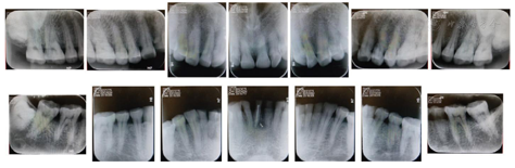 结合病史、口内检查、X线片诊断为上下颌牙列重度磨耗。