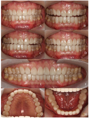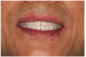 患者20年来牙齿逐渐磨耗变短,曾有酸痛,现自觉不美观,近1年戴用