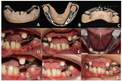 治疗过程:①局麻下,分四次拔除滞留乳牙;②2021年5月6日,局麻下行左下前磨牙区外科开窗手术,去除33、34、35冠方阻力,联合下颌固定矫治器正畸牵引34;(图10)③2021年8月19日,局麻下行上颌前牙区多生牙拔除术(3枚)(图11);④2021年9月12日,佩戴螺旋快速扩弓器扩大上颌牙弓。