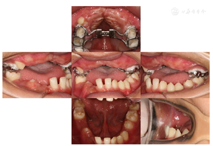 进行多学科联合序列治疗,包括分次拔除滞留乳牙、多生牙、同时外科正畸联合牵引阻生牙、上颌扩弓等。