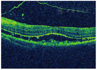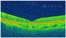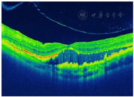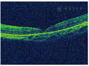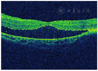 OCT检查:玻璃体及视网膜外层可见高反射团,黄斑区神经上皮层脱离(图3)。